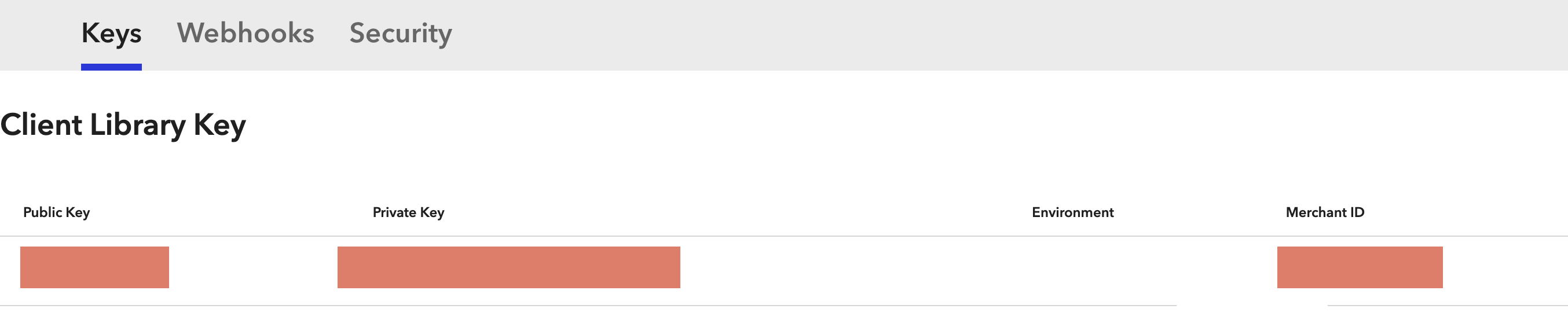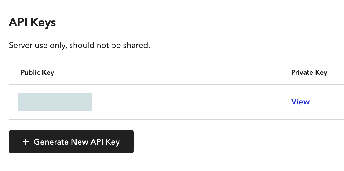 Once the new key is generated, you'll see: - Public Key - Private Key (click View to reveal it) - Merchant ID